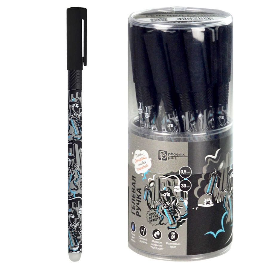 Ручка гелевая ПИШИ-СТИРАЙ арт. 67378 / 30 БУНТАРСКИЙ ДУХ (ПВХ тубус, 30 шт., неавтоматическая, 7x152 мм, цвет корпуса: черный, голубой, материал корпуса: АБС-пластика с добавлением САН-пластика, покрытие корпуса: софт-тач, 0,5 мм, цвет чернил: синий, стержень: сменный).