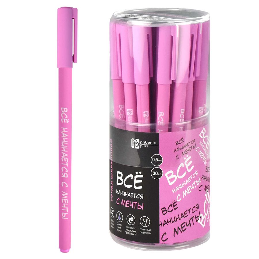 Ручка шариковая арт. 67418 / 30 ФРАЗЫ С ХАРАКТЕРОМ (ПВХ тубус, 30 шт., неавтоматическая, 7x150 мм, цвет корпуса: розовый, белый, материал корпуса: АБС-пластика с добавлением САН-пластика, покрытие корпуса: софт-тач, 0,5 мм, цвет чернил: синий, стержень: сменный).