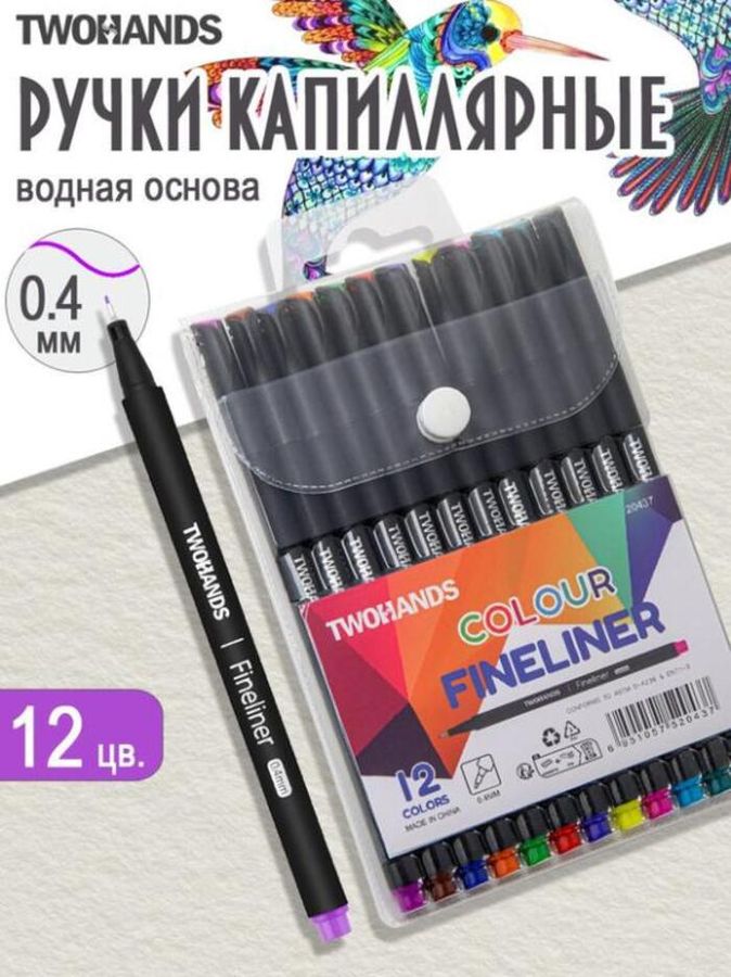 Набор капиллярные ручек 12 цветов. Цветная ручка с тонким наконечником 0,4мм подходит для письма, составления схем и графиков, важных встреч, структурирования и запоминания записей, ведения дневников, подчеркивания. Длина письма 600 метров. Яркие живые цвета канцелярской ручки линера идеальны для иллюстрирования, прорисовки линий и деталей, рисования, раскрашивания мандала и раскрасок антистресс для взрослых и детей, скетчинга, нейрографики, художественных рисунков и небольших замысловатых узоров. Легкий корпус ручки фломастера удобно лежит в руке. Колпачок плотно закрывается, позволяя долго хранить ручку и предотвращая высыхание чернил. Красивая тонкая ручка мягко пишет. Чернила на водной основе, не содержат кислот, безопасность и качество чернил подтверждено европейским и американским стандартами. Чернила отмываются с рук и отстирываются с ткани. Упакована в мягкий прозрачный виниловый набор, который легко помещается в рюкзаке.