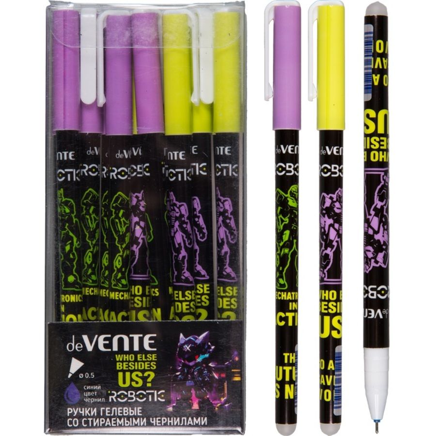 Ручка гелевая стираемая "deVENTE. Robotic" d=0,5 мм, 2 дизайна корпуса ассорти, с ластиком, сменный стержень, индивидуальная маркировка, синяя