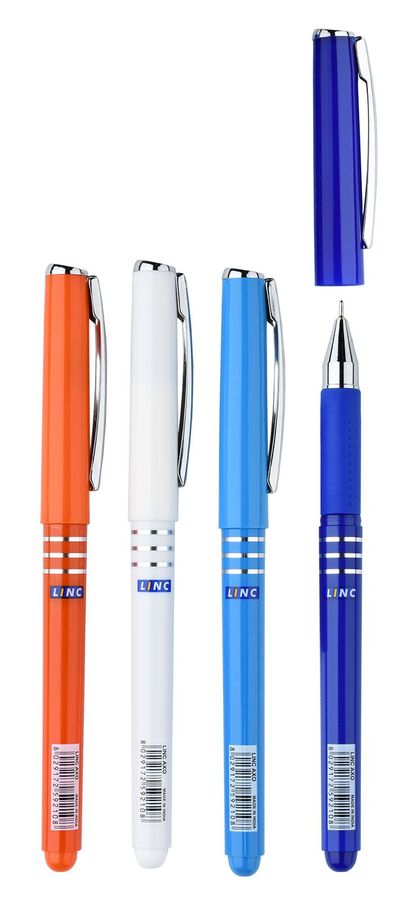 Шариковая ручка AXO — ручка ультрамягкого комфортного письма от известного бренда LINC. Разработана специально для долгого письма с внушительным запасом чернил (линия письма в 2 км) и удобным широким корпусом с мягкой резиновой манжетой. Пишет легко, мягко и плавно, без напряжения руки, оставляя ровный и четкий оттиск. Имеет благородный, лаконичный и элегантный дизайн, с принтом в виде 3 серебряных колец, опоясывающих корпус, с металлическим клипом и наконечником. Выполнена из плотного пластика. В коробке ручки в четырех цветовых версиях корпуса — белый, голубой, оранжевый, темно-синий. Пишущий узел - игла 0,7мм. Длина стержня 11,2 см.. Цвет чернил - синий. В коробке 12 ручек.