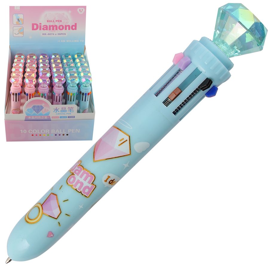 Ручка, шариковая, автоматическая, 10 цветов, пишущий узел 0,7 мм, Diamond, КОКОС, 252016, KUKI