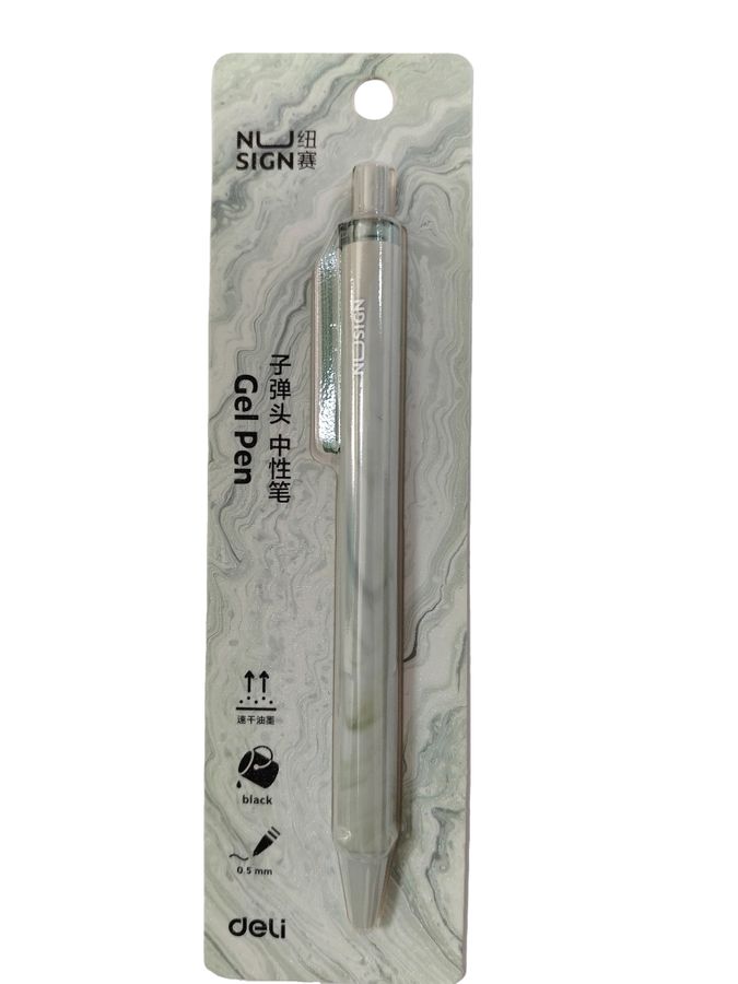 Ручка гелевая автоматическая черная 0,5мм Nusign быстросохнущая зеленый корпус DELI NS557C-GN