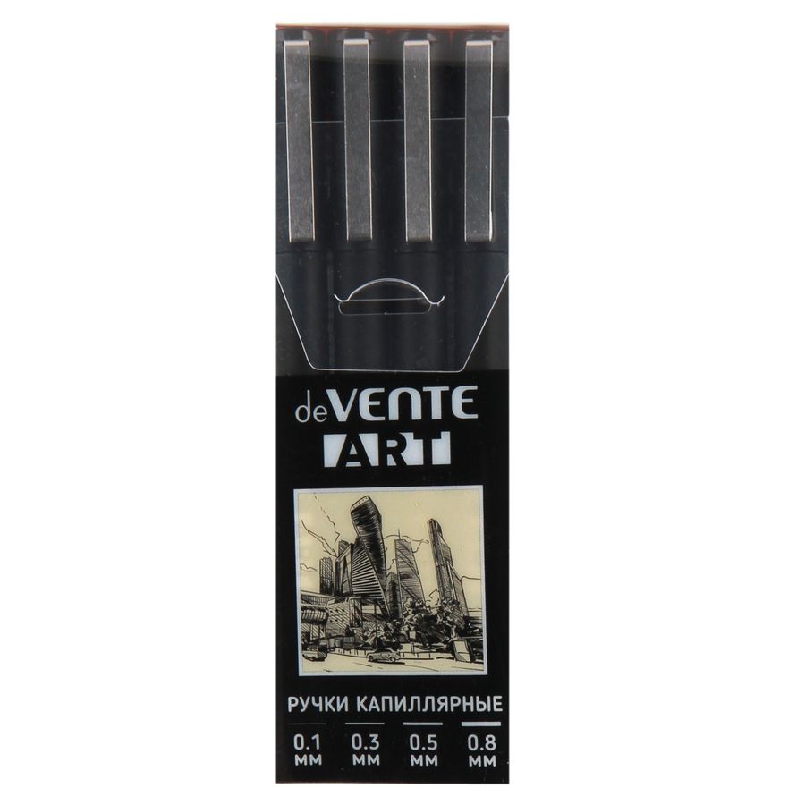 Набор ручек капиллярных "deVENTE. ART" 04 шт, d=0,1, 0,3, 0,5, 0,8 мм, чернила - черные, круглый корпус, металлический клип, пишущий узел в металлической обойме, в пластиковой коробке