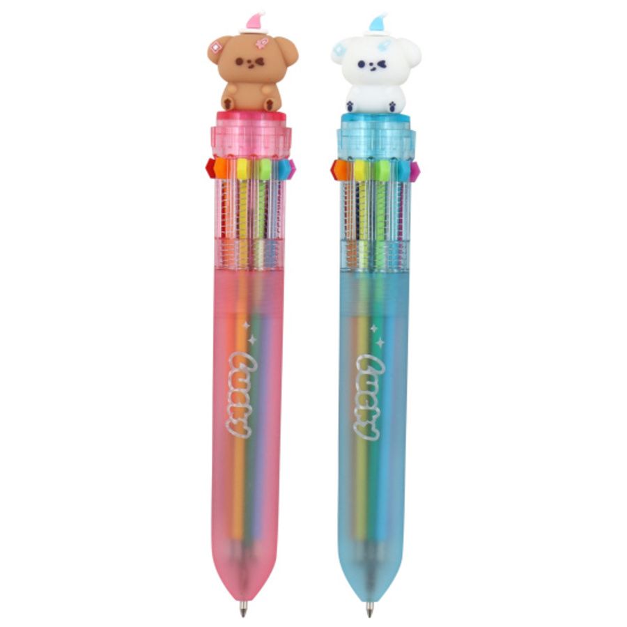 Ручка шариковая автоматическая 10-ти цветная 0,7мм PIAN XIN Собачка ассорти Кокос 241733