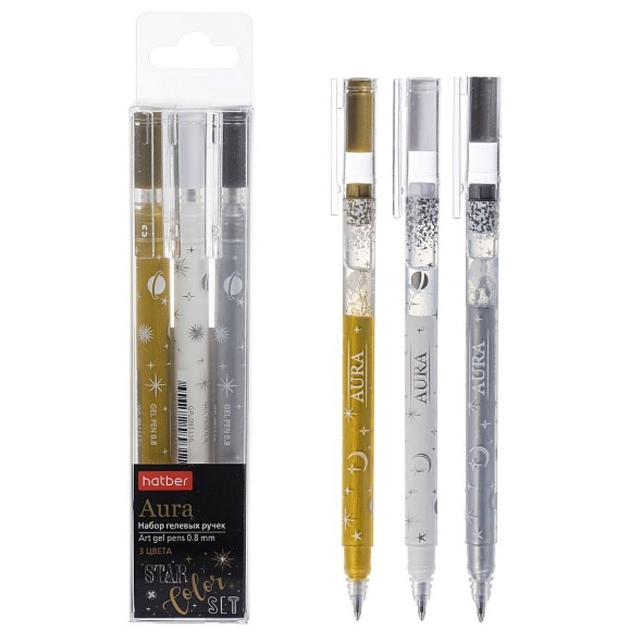 Ручка гелевая Набор 3цв 0,8мм Aura HATBER GP_091119