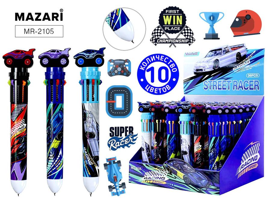 Ручка шариковая автоматическая RACING, 10 цв. (ФИОЛЕТОВЫЙ, ЧЕРНЫЙ, СИНИЙ, КРАСНЫЙ, ОРАНЖЕВЫЙ, ЗЕЛЕНЫЙ, ЖЁЛТЫЙ, ГОЛУБОЙ, РОЗОВЫЙ, КОРИЧНЕВЫЙ), пулевидный пиш.узел 0.7мм, корпус пластиковый цветной, сменный стержень 68 мм, картонный дисплей
