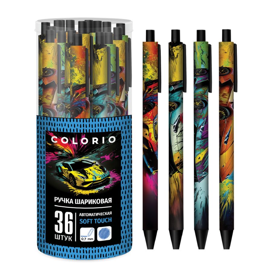 Ручка шариковая автоматическая синяя 0,7мм Авто корпус soft touch ассорти Colorio COMB-USC-130-PVC36