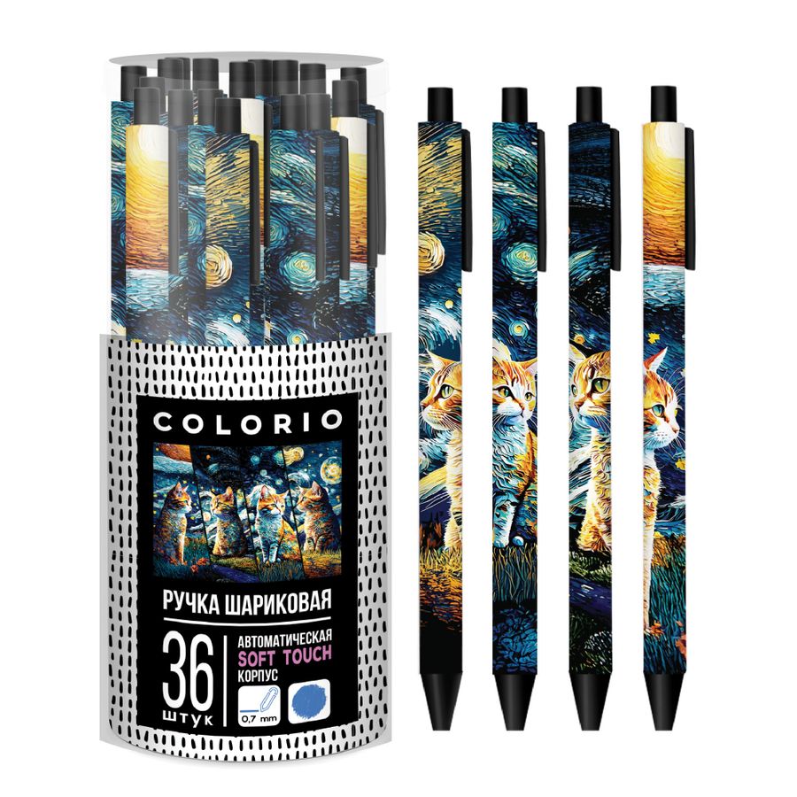 Ручка шариковая автоматическая синяя 0,7мм Коты корпус soft touch ассорти Colorio COMB-USB-130-PVC36