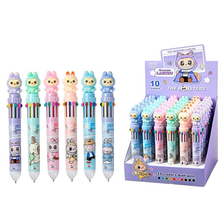 Ручка шариковая автоматическая ЗУБАСТИК, 10 цв., пулевидный пиш. узел 0.7 мм, корпус пластиковый цветной, ассорти 6 дизайнов, сменный стержень 68 мм, картонный дисплей