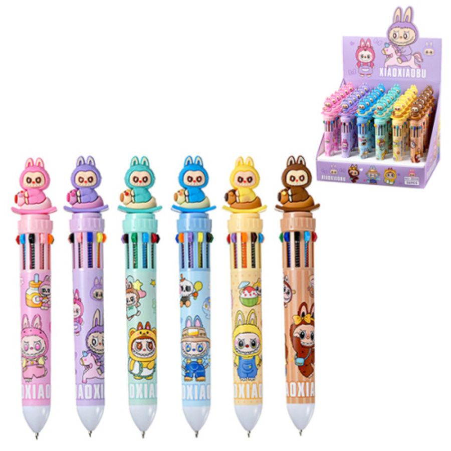 Ручка шариковая автоматическая ЗУБАСТИК, 10 цв., пулевидный пиш.узел 0.7мм, корпус пластиковый цветной, 6 дизайнов в ассортименте, сменный стержень 68 мм, картонный дисплей 8008