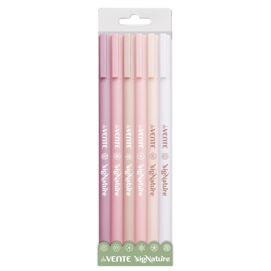 Набор ручек шариковых "deVENTE. sigNATURE" 06 штук, d=0,5 мм, круглый корпус с покрытием Soft Touch, цвет корпуса ассорти в пудрово-розовой цветовой палитре , сменный стержень, чернила только синие, в пластиковой коробке