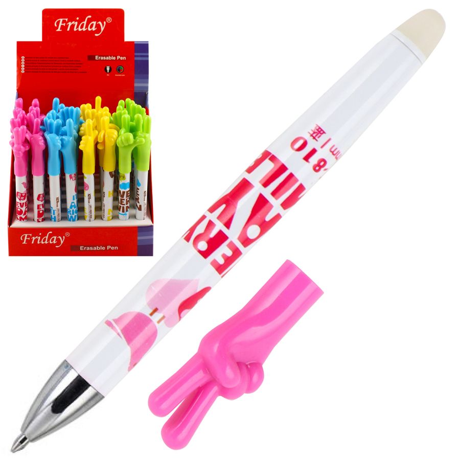 Ручка шариковая синяя 0,8мм Пиши-стирай Рука Friday ассорти 4 диз. Кокос 170374