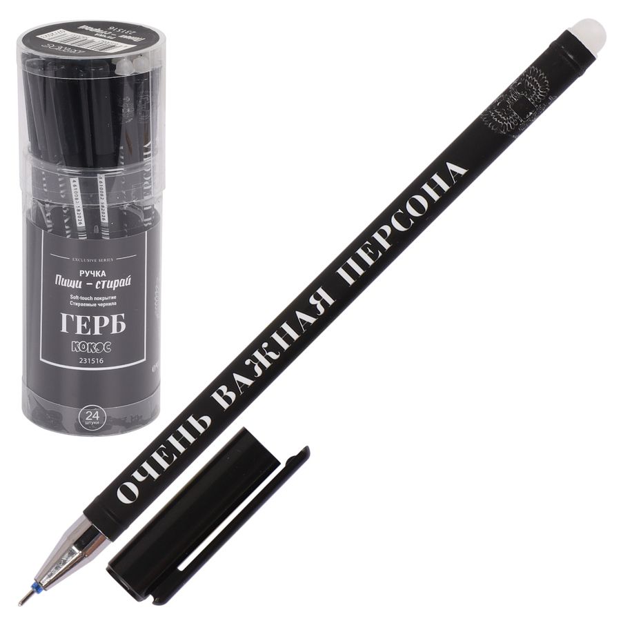 Ручка гелевая синяя 0,5мм Пиши-стирай Герб игольч.стержень Кокос 231516