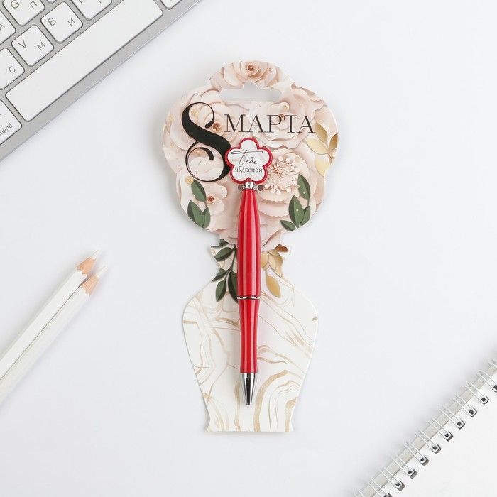 Ручка подарочная синяя 8 марта пластик с цветком SM 7070916