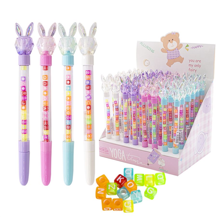 Ручка подарочная шариковая синяя 0,7мм Зайчата прозрач.корпус с бусинами ассорти ALINGAR AL10641