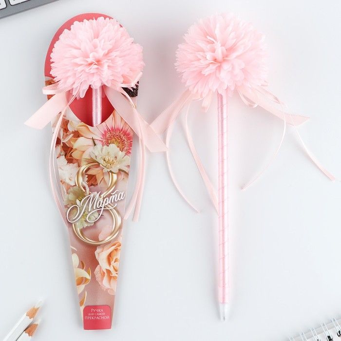 Ручка сувенирная шариковая синяя Хризантема с лентами 8 марта ArtFox 9783743
