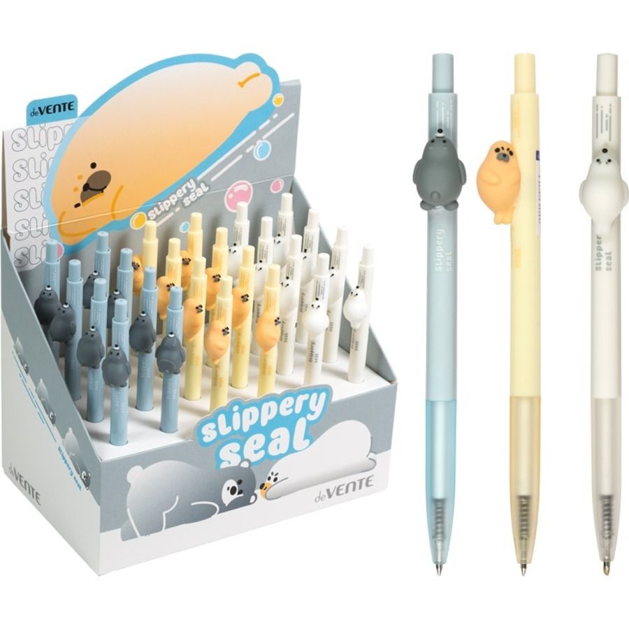 Ручка шариковая автоматическая подарочная "deVENTE. Тюленьчики" с декоративным элементом, d=0,7 мм, ультра гладкое письмо, чернила на масляной основе, сменный стержень, синяя, ассорти 3 дизайна.