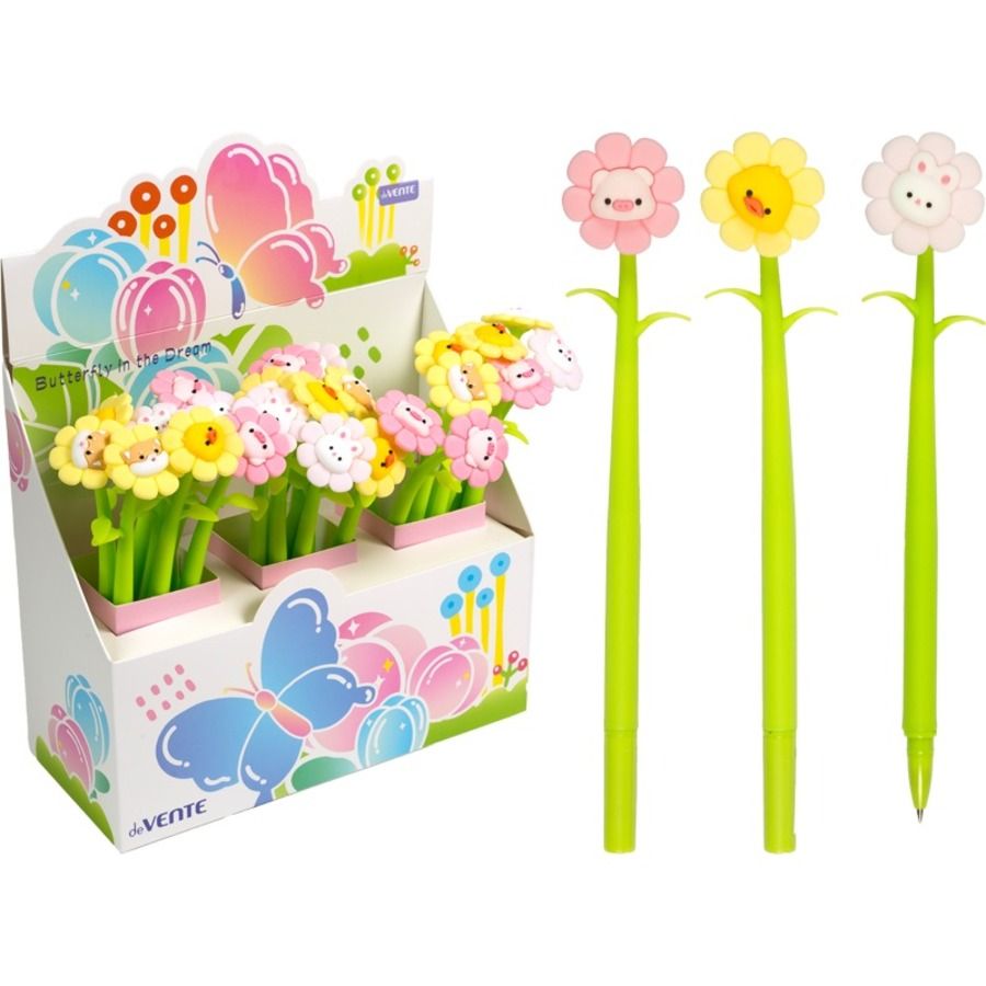 Ручка шариковая силиконовая подарочная "deVENTE. Animal Flower" с декоративным элементом на гибком корпусе, d=0,7 мм, ультра гладкое письмо, чернила на масляной основе, сменный стержень, синяя, ассорти 3 дизайна.