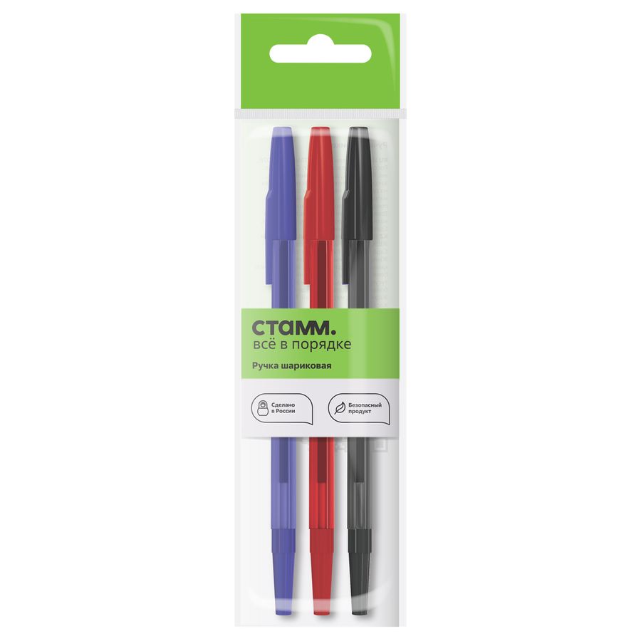 Набор шариковых ручек «СТАММ» состоит из четырёх ручек синего, чёрного и красного цвета. Благодаря классической шестигранной форме корпуса ручка комфортно лежит в руке. Диаметр пишущего узла: 0,7 мм, толщина линии письма: 0,5 мм. Длина стержня: 135 мм. Износостойкий наконечник и чернила на масляной основе обеспечивают мягкое, ровное и комфортное письмо. Изделие изготовлено из качественных материалов, и идеально сочетает в себе функциональность и современный дизайн. Упаковка: пакет с европодвесом.• Цвет чернил: синий, чёрный, красный;• Цвет корпуса: тонированный ассорти;• Диаметр пишущего узла: 0,7 мм;• Толщина линии письма: 0,5 мм;• Форма корпуса: шестигранная;• Вентилируемый колпачок: да;• Упаковка: пакет с европодвесом;• Количество: 3 штуки.
