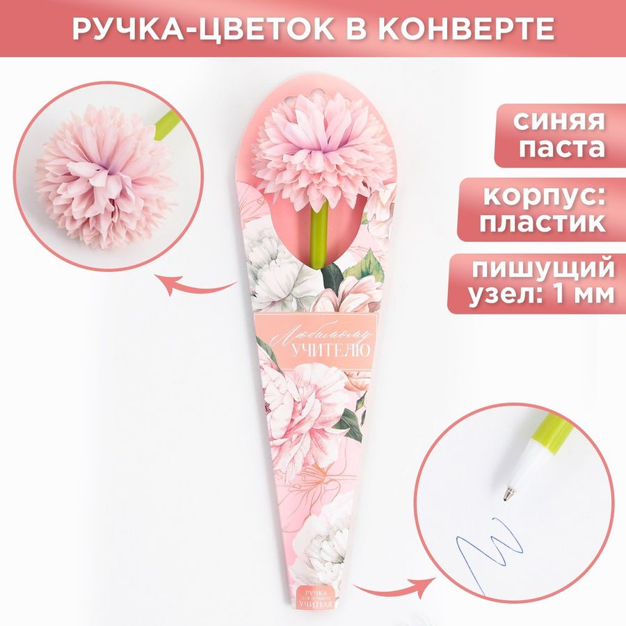 Ручка подарочная шариковая синяя 1,0мм Любимому учителю с цветком пласт.корп. конверт ArtFox 9465228