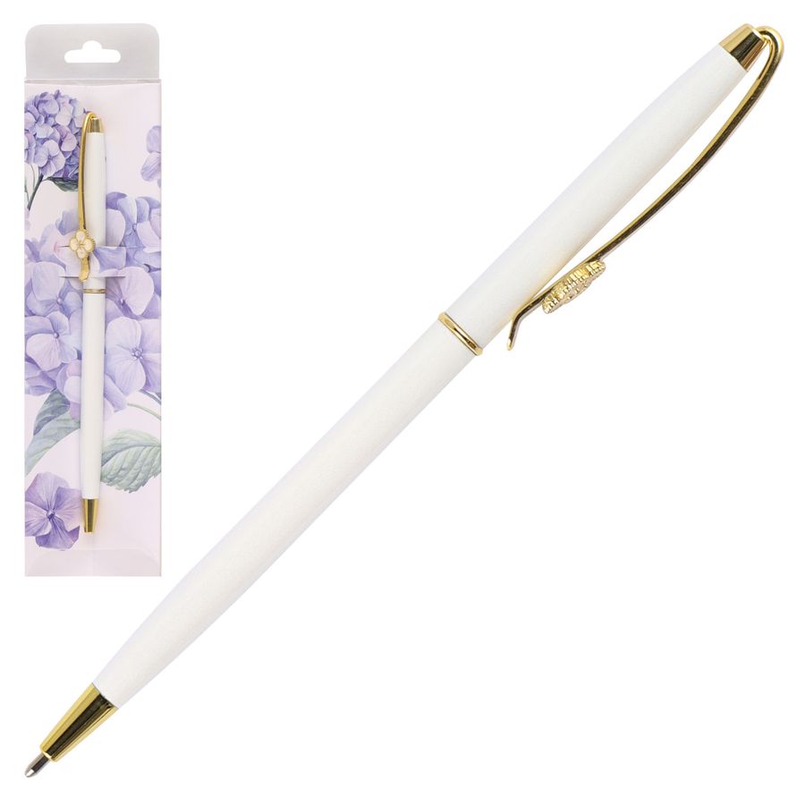 Ручка подарочная шариковая пов.мех. синяя 0,7мм Гортензия белый корпус пл/у FIORENZO 232039