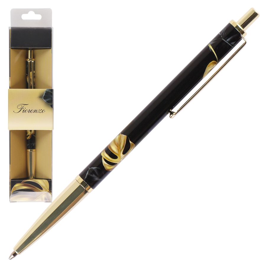 Ручка шариковая подарочная черный корпус с дизайном нажимной механизм FIORENZO Тропический шик 232010 синяя картонный футляр