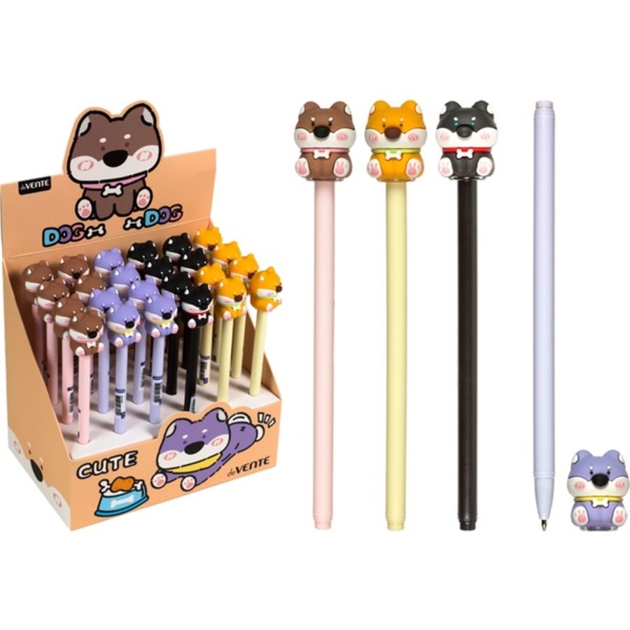 Ручка шариковая подарочная "deVENTE. Doggy" с декоративным элементом, d=0,7 мм, ультра гладкое письмо, чернила на масляной основе, сменный стержень, индивидуальная маркировка, в картонном дисплее, синяя, ассорти 4 дизайна