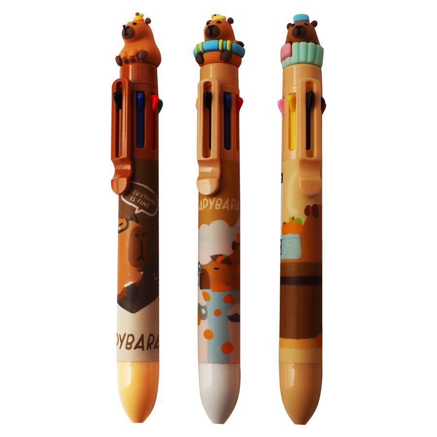 Ручка шариковая автоматическая 8 в 1 подарочная "deVENTE. Capybara" с декоративным элементом, d=0,7 мм, 8-ми цветная, ультра гладкое письмо, чернила на масляной основе, сменный стержень, индивидуальная маркировка, в картонном дисплее, ассорти 3 дизайна