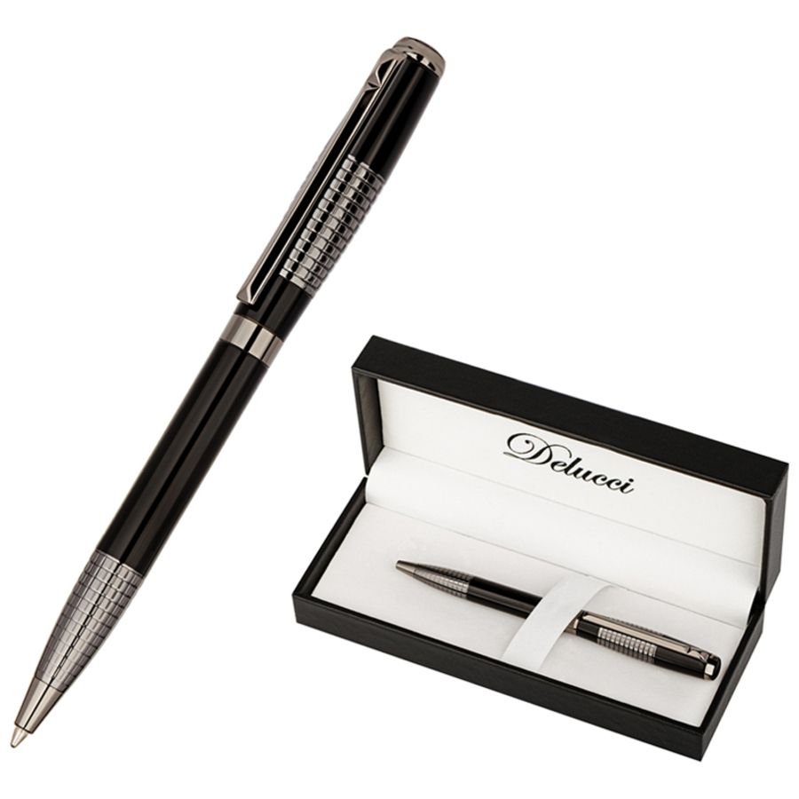 Delucci Vivo – это необычная подарочная шариковая ручка с синими чернилами, которая подойдёт в качестве подарка коллеге или другу. Оригинальное опоясывающая гравировка неизменно привлекает внимание к класическому сочетанию серебрянного и черного цвета корпуса. Клип сделан из нержавеющей стали, он позволяет фиксировать ручку на ежедневниках, блокнотах и карманах одежды. Delucci Vivo оснащена поворотным механизмом, внутри которого расположен пишущий стержень диаметром 1 мм, который идеально подходит для быстрого стиля письма. Упакована в кожаный футляр.• Цвет чернил: синий;• толщина линии письма: 0,7 мм;• цвет корпуса: чёрный/серебро;• тип упаковки: кожаный футляр;• комплектация: футляр, ручка.