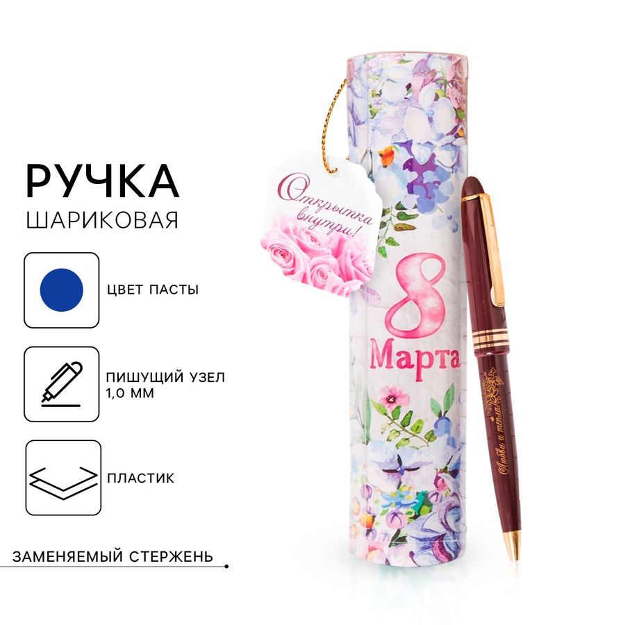 Ручка подарочная шариковая синяя 1,0мм 8 Марта пластик.корпус тубус ArtFox 2372649