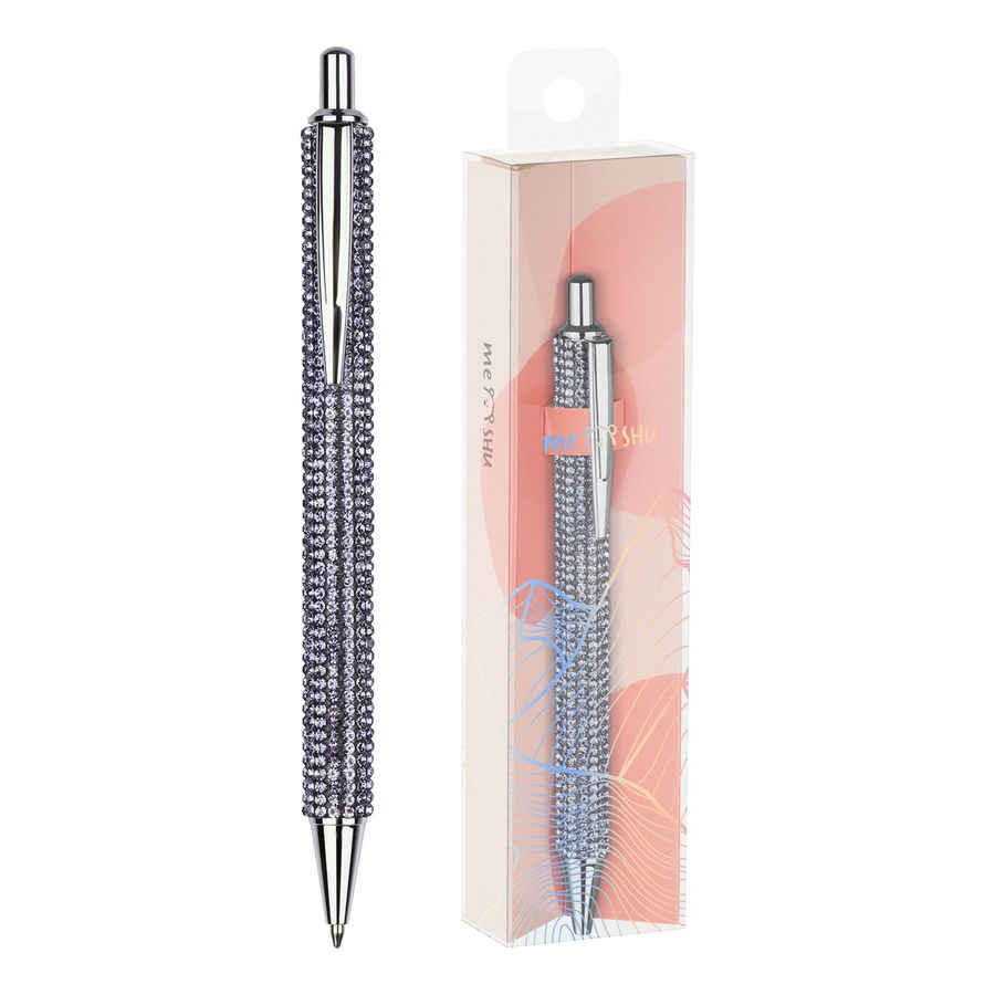 Синяя шариковая ручка MESHU "Lilac diamond" – это не только пишущая принадлежность, но и яркий аксессуар для тех, кто хочет выделяться. Серебристый корпус из металла украшен стразами. Благодаря необычному декору и яркой индивидуальной упаковке с голографическими элементами ручка — готовое решение для подарка.Диаметр пишущего узла составляет 1 мм, поэтому она подходит для мягкого и быстрого письма. Толщина линии — 0,8 мм. При помощи металлического клипа ручку можно закрепить на одежде или ежедневнике. Пишущая принадлежность оснащена кнопочным механизмом, что говорит о надёжности и безопасности изделия. Стержень не оставит следов на подкладке сумки и одежде. Благодаря чернилам синего цвета ручку можно использовать в работе или учёбе на постоянной основе.• Цвет чернил: синий;• Толщина линии письма: 0,8 мм;• Механизм: кнопочный;• Индивидуальная упаковка: ПВХ-бокс с голографией.