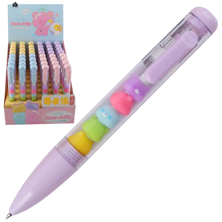 Ручка сувенирная гелевая синяя 0,5мм Kuki Bear jelly игольч.стержень ассорти Кокос 252019