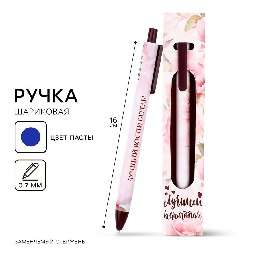Ручка подарочная шариковая автом. синяя 0,7мм Лучший воспитатель пласт.корп. конверт ArtFox 10299501
