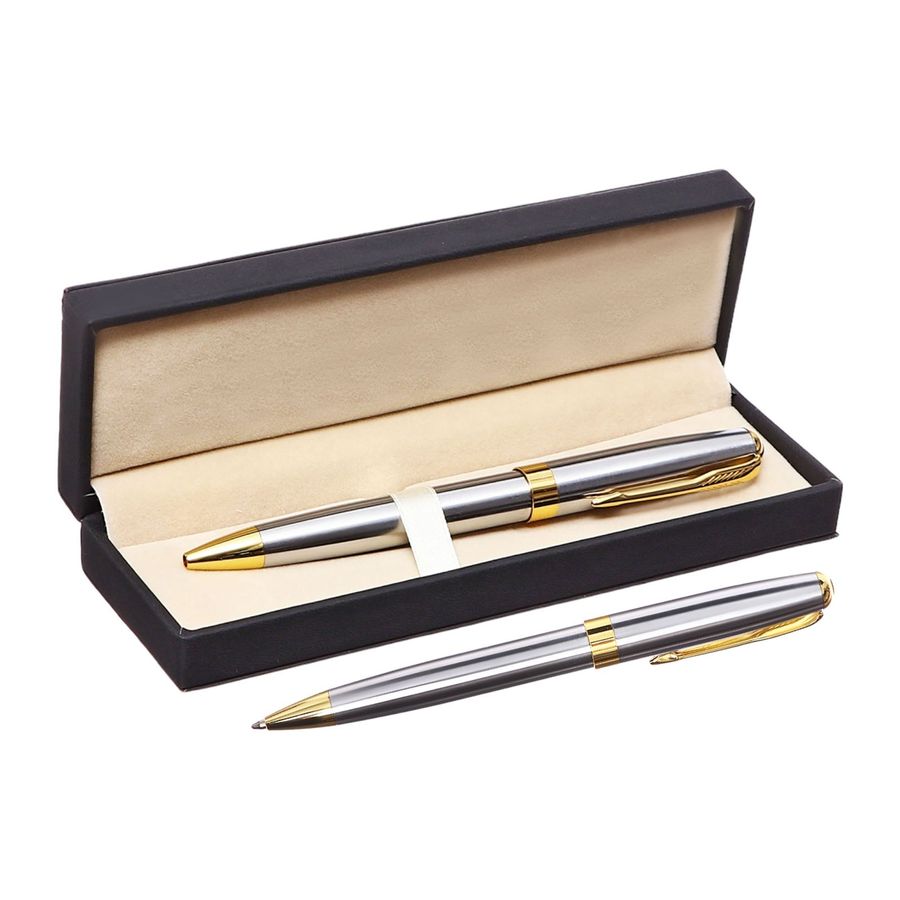 Ручка подарочная шариковая, в кожзам футляре, поворотная, корпус серебро/золото