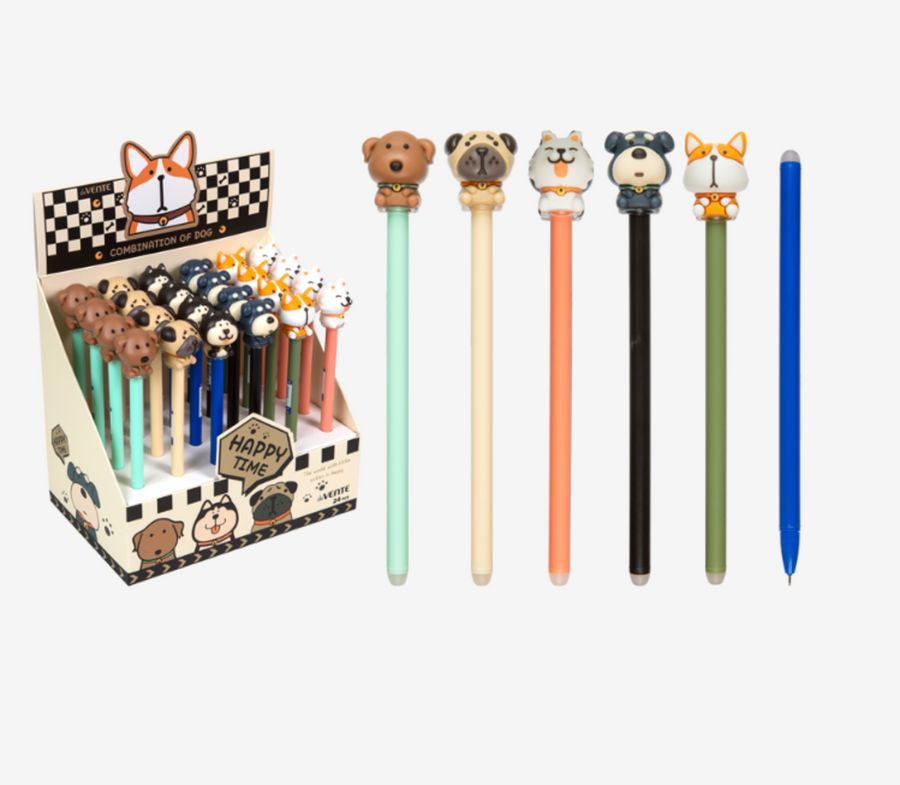 Ручка гелевая стираемая подарочная "deVENTE. Combination of Dogs" с декоративным элементом, d=0,5 мм, с ластиком, сменный стержень, индивидуальная маркировка, в картонном дисплее, синяя, ассорти 6 диз