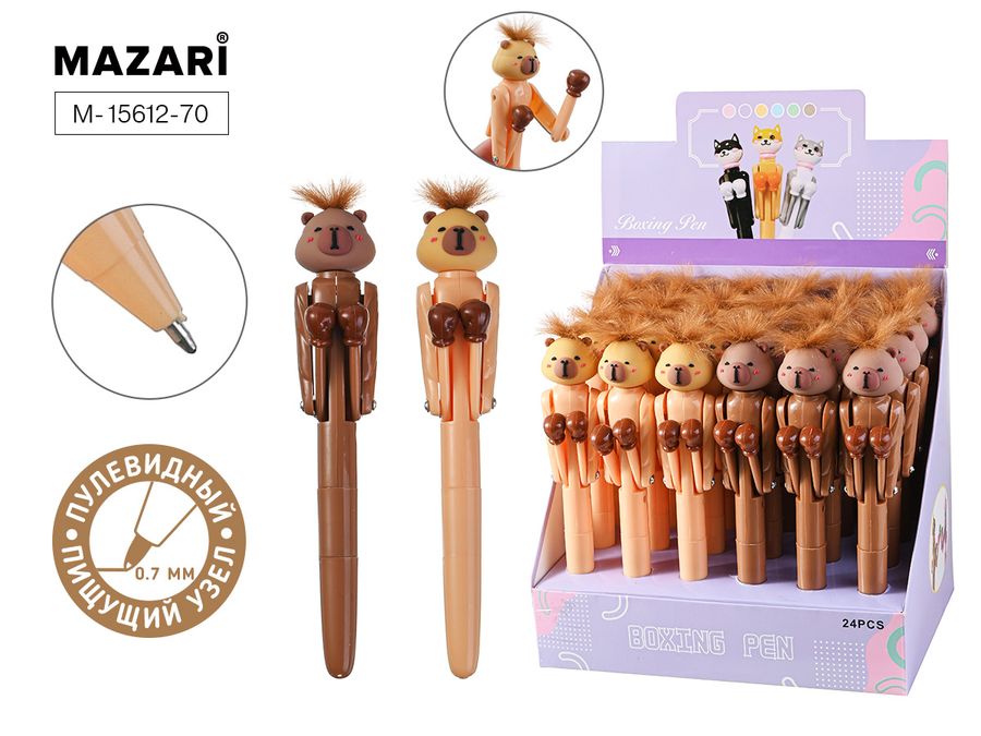 Ручка сувенирная шариковая синяя 0,7мм Boxing Capybara ассорти MAZARI M-15612-70