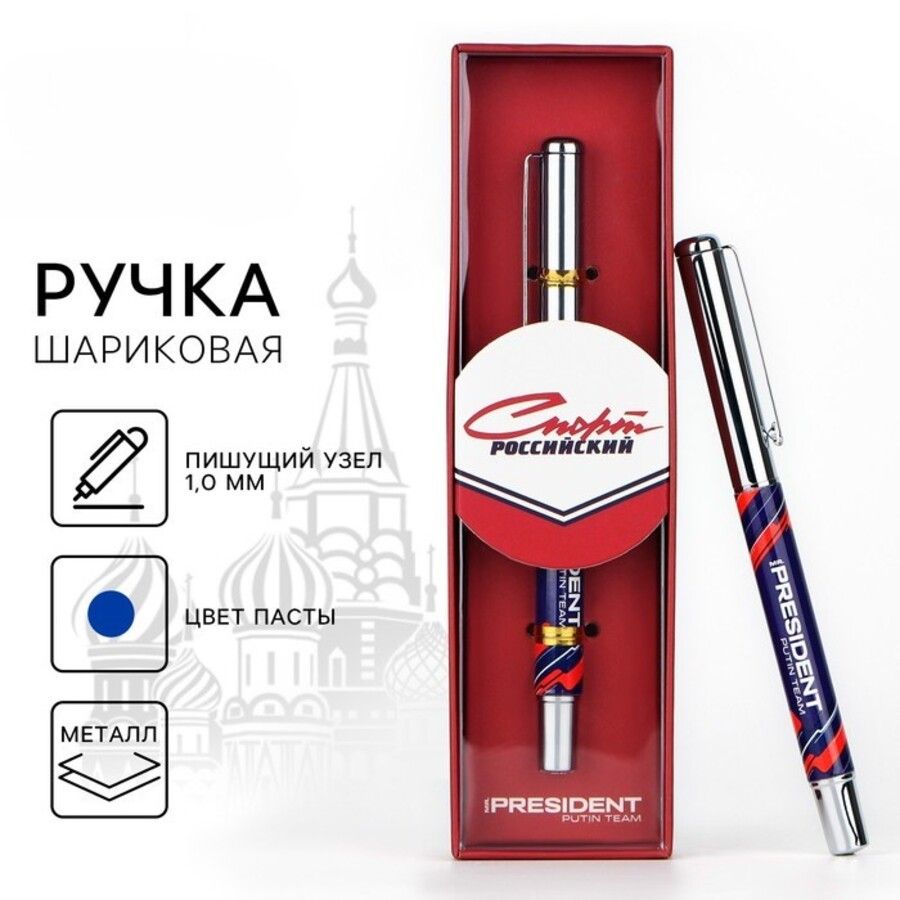 Ручка подарочная шариковая синяя 1мм Спорт российский корпус металл SM 7668630
