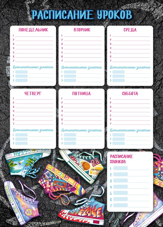 Расписание уроков А3 Яркие кеды УФ-лак мелов.картон ФЕНИКС+ 63559