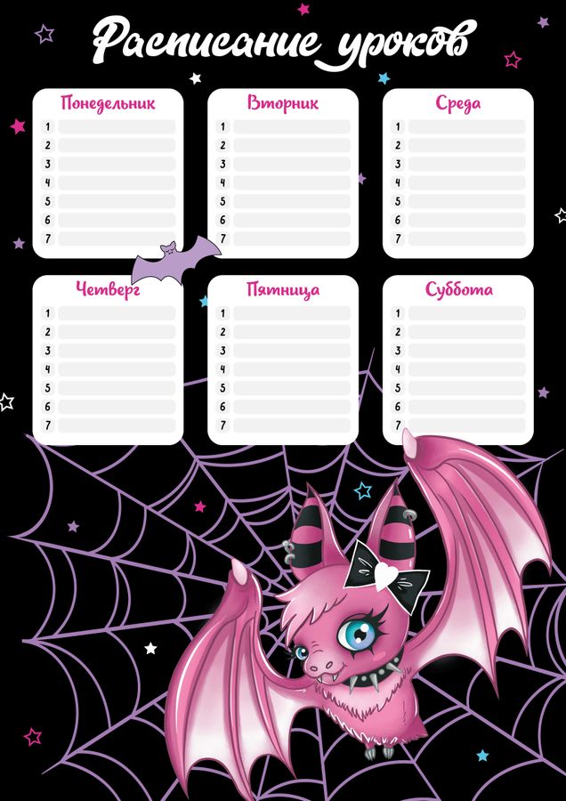 Расписание уроков А4, арт.63536/К/ 50 ГЛАМУРНАЯ МЫШКА (210x297 мм, материал: мелованный картон 235 г/м², полноцветная печать, декор: выборочный УФ-лак; цвет: чёрный, малиновый, сиреневый; индивидуальная упаковка: нет)