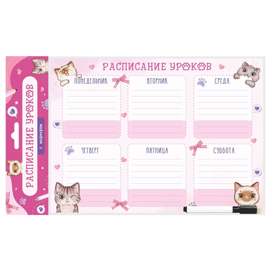Наши магнитные расписания помогут школьникам правильно организовать учебный процесс. Теперь расписание уроков всегда будет у ребёнка перед глазами. И ваш юный гений ни в коем случае не забудет о предстоящей контрольной работе, отчётном концерте, дополнительном кружке или секции. Всю эту важную информацию можно разместить на магнитном расписание наряду с бытовыми, актуальными для вашего ребёнка, заметками. Поверхность планера заламинирована, поэтому с неё легко стереть написанное и использовать расписание уроков много-много раз. К каждому расписанию прилагается маркер на магните с губкой, который идеально подходит для работы с этим планером.