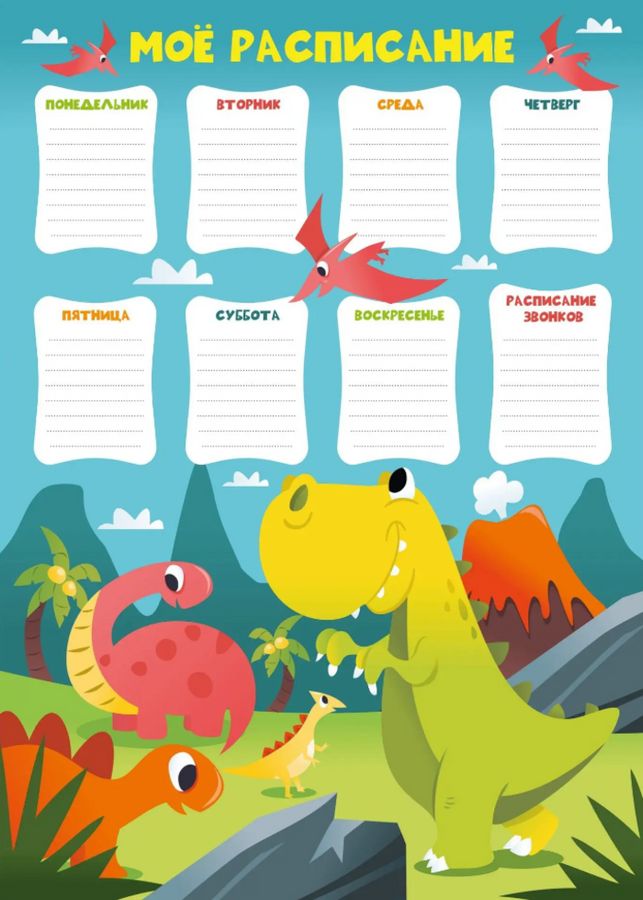 Расписание уроков Listoff – личный помощник ребят школьного и дошкольного возраста. Оно идеально подходит для планирования и подготовки заданий в домашних условиях. Для каждого ребенка очень важен распорядок дня. Наше расписание уроков дисциплинирует, учит самостоятельности и помогает рационально организовать время и подготовить все необходимое для следующих занятий.Расписание выполнено с отделкой выборочным лаком из высококачественной мелованноого картона формата А3. Для удобства изображена вся неделя неделя с 7 строками на каждый день, а также расписание звонков.Подходит как для планирования школьных занятий, так и для расписания доп.секций и кружков по хобби.