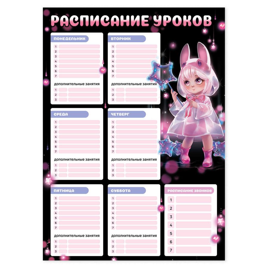 Расписание уроков А3, арт. 68845/ 50 ЛОЛИ И ЗВЕЗДЫ (297х420 мм, материал: мелованный картон 235 г/м², полноцветная печать, декор: выборочный УФ-лак; цвет: розовый, фиолетовый, чёрный; индивидуальная упаковка: нет)