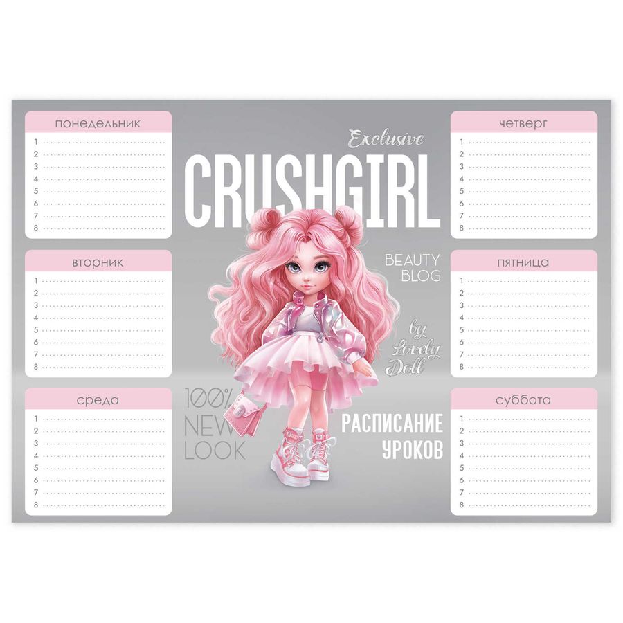 Расписание уроков А4, арт. 68850/ 50 КРАСОТКА (210x297 мм, материал: мелованный картон 235 г/м², полноцветная печать, декор: выборочный УФ-лак; цвет: серый, белый, розовый; индивидуальная упаковка: нет)