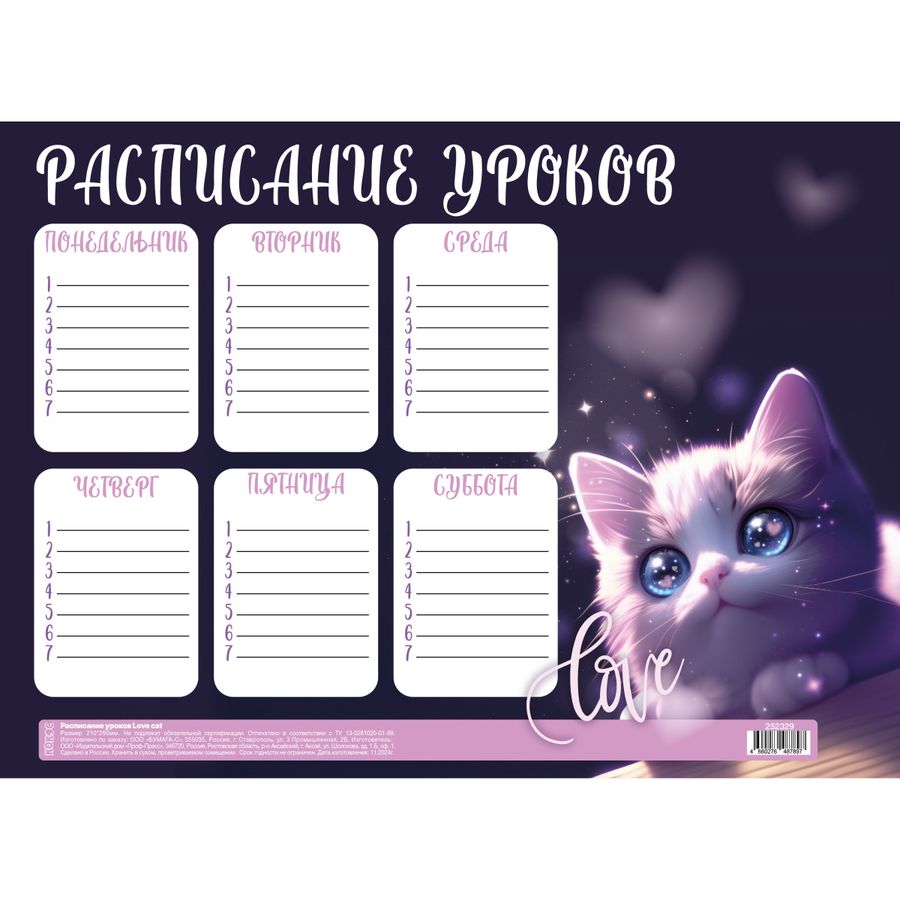 Расписание уроков А4 Love cat Кокос 261901