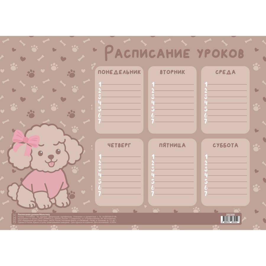 Расписание уроков А4 Мальтипу Кокос 261904