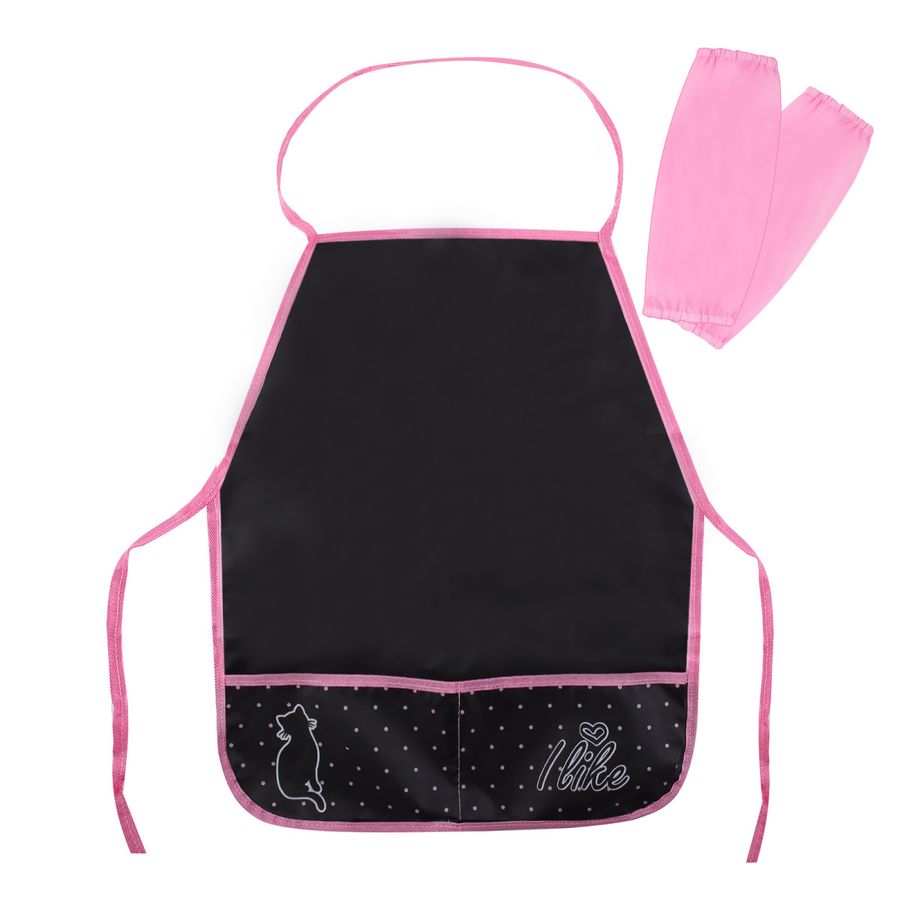 Фартук для труда с нарукавниками, полиэстер, 49*39 см, карманы, для девочек, цвет черный Cat secret КОКОС 240177 увеличенный размер нарукавников - 25*14,5см (ДШ)
