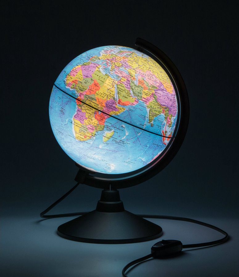 Диаметр 210 Масштаб 1:60000000 Материал подставки Пластик Размер коробки 216х216х246 мм. цветная и одноцветная Цвет подставки Чёрный Дополнительно шар выполнен из толстого пластика, имеет один прочный шов по экватору.