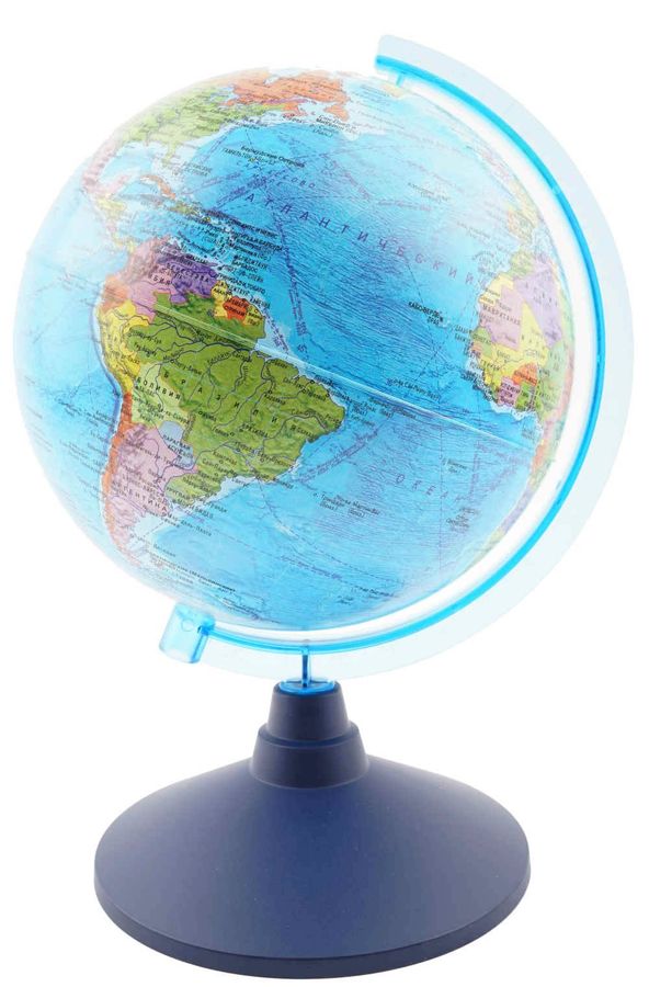 Диаметр 210 Масштаб 1:60000000 Материал подставки Пластик Размер коробки 216х216х246 мм. цветная и одноцветная Цвет подставки Чёрный Дополнительно шар выполнен из толстого пластика, имеет один прочный шов по экватору.