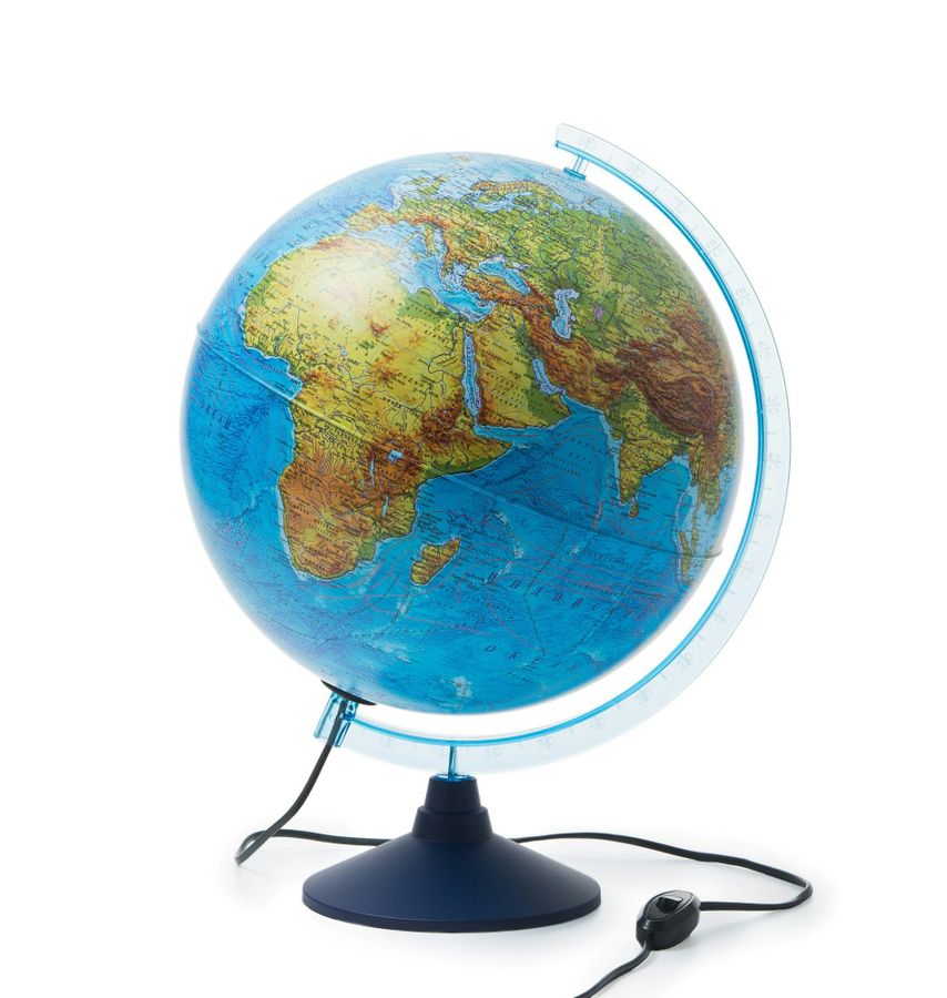 Интерактивный рельефный глобус Глобен INT12500286 поможет увлечь ребенка в изучение географии и истории нашей большой планеты. В игровой форме, легко и интересно, он расскажет о расскажет и покажет, как многообразен наш мир. С виду это обычный рельефный физический глобус, изготовленный из пластика на настольной синей подставке со сферой диаметром 25 см. Поверхность сферы рельефная, все горные хребты выступают над основной плоскостью. Глобус с подсветкой, которая работает от сети. При включении подсветки физическая карта меняется на политическую. Карта глобуса очень подробная, выполнена в полном соответствии требованиям картографии к условным обозначениям ландшафта и с соблюдением масштаба, обозначены все географические и административные объекты. Поэтому глобус служит отличным серьезным учебным пособием для изучения географии и политико-административного устройства нашего мира. Но чудесное преображение глобуса произойдет, если скачаете приложение на смартфон или планшет. Благодаря функции 3D AR Технология глобус оживает. На экране мобильного устройства вы увидите то, что не найдете никогда на карте обычного глобуса - чудеса света, динозавров, обитателей всех материков и подводного мира, необычные растения и еще много, много интересного. Каждое живое изображение сопровождается увлекательным рассказом пяти маленьких любознательных натуралистов - всезнайки Ариши, почемучек Мити и Темы, кошки Ириски и верного пса Астора. Эти пытливые исследователи возьмут вашего ребенка в путешествие по миру и откроют ему много интересных фактов, превратив глобус в настоящую большую энциклопедию. Они покажут чудеса света, необычайные открытия археологов, достопримечательности нашей современности. Расскажут о многообразие животного и растительного мира Земли и его особенностях в каждом ее уголке. Маленькие путешественники даже помогут опуститься на морское дно и узнать о его обитателях. Ваш ребенок сможет проникнуть в недра земли и узнать, почему вулканы извергают лаву. Красочные живые картинки завораживают, как интересные мульфильмы, каждая картинка сопровождается увлекательным рассказом маленьких путешественников об объекте исследования с их комментариями, впечатлениями и не всем известными фактами. Глобус со смартфоном превращаются вместе в интересную обучающую игру, с помощью которой информация усваивается значительно лучше и у ребенка развивается здоровое любопытство и интерес к естесственным наукам, истории нашей планеты. Интерактивный глобус не оставит равнодушным никого, ни детей, ни взрослых. Рекомендуем детям от 3-х лет.